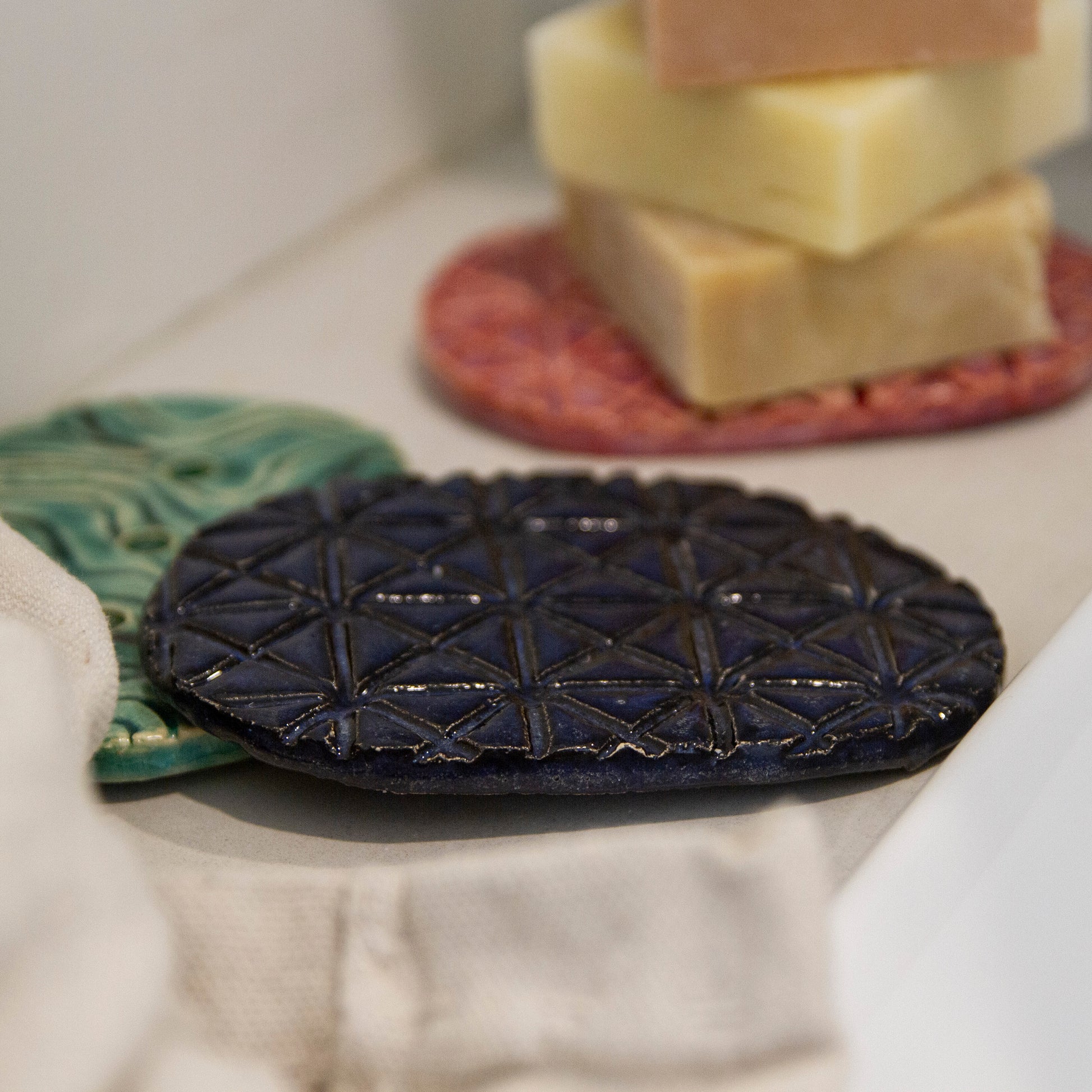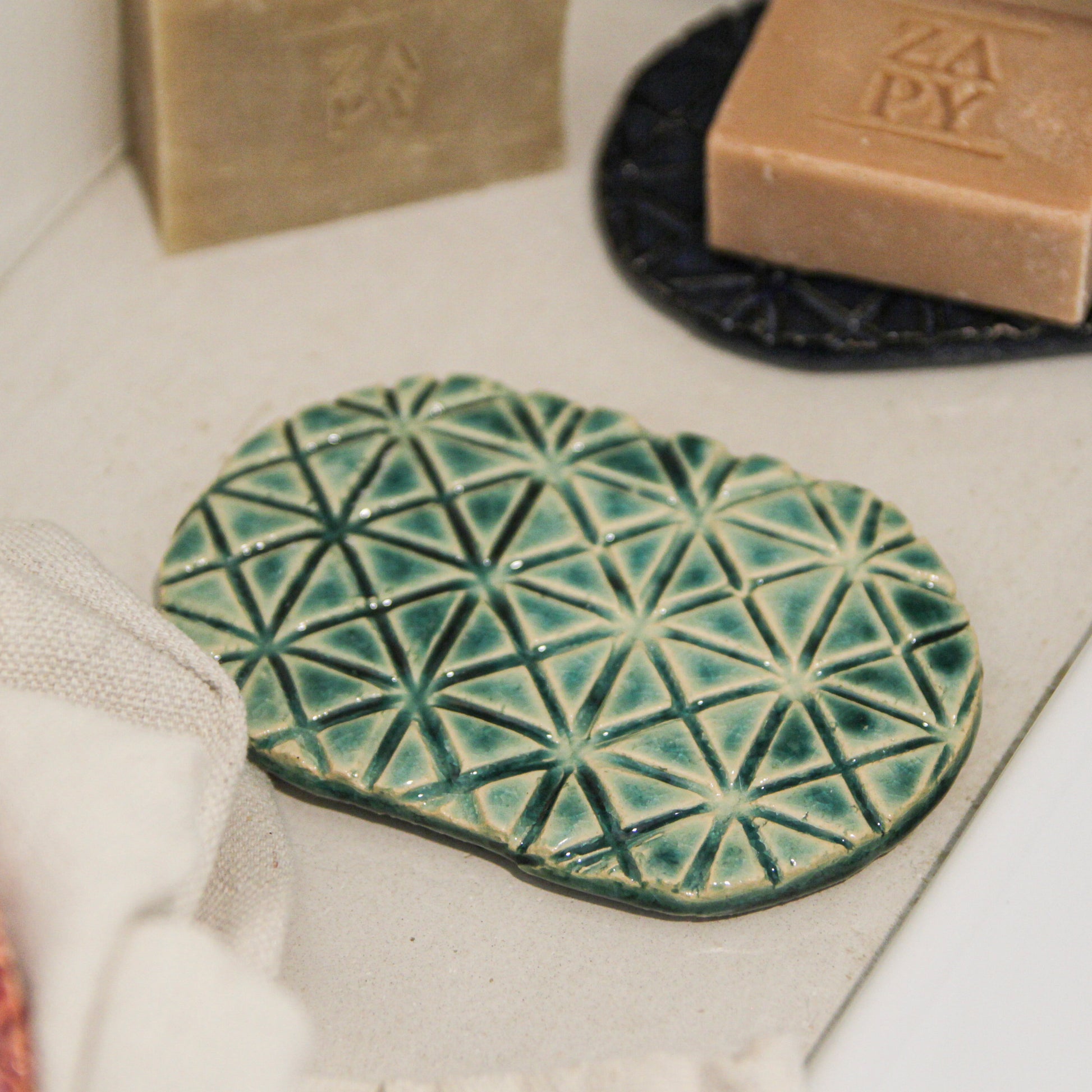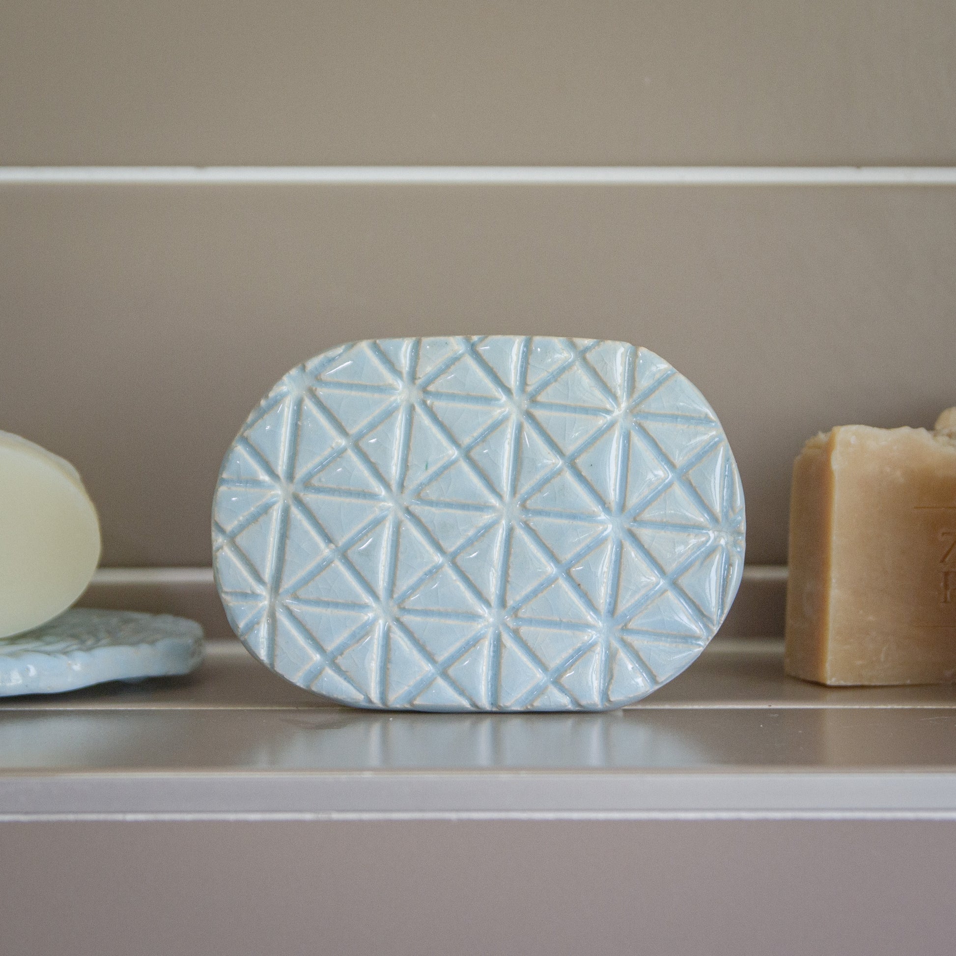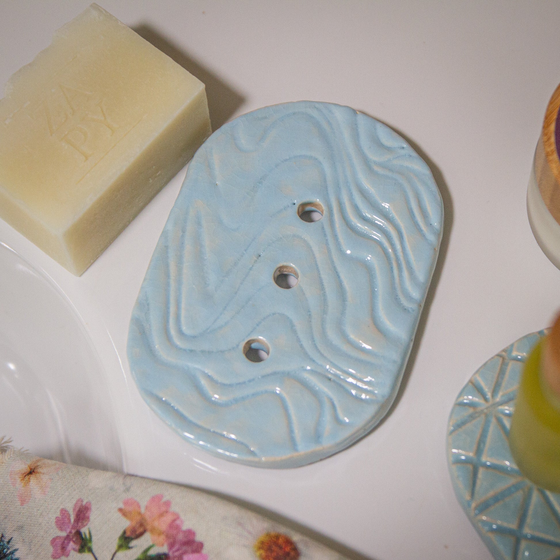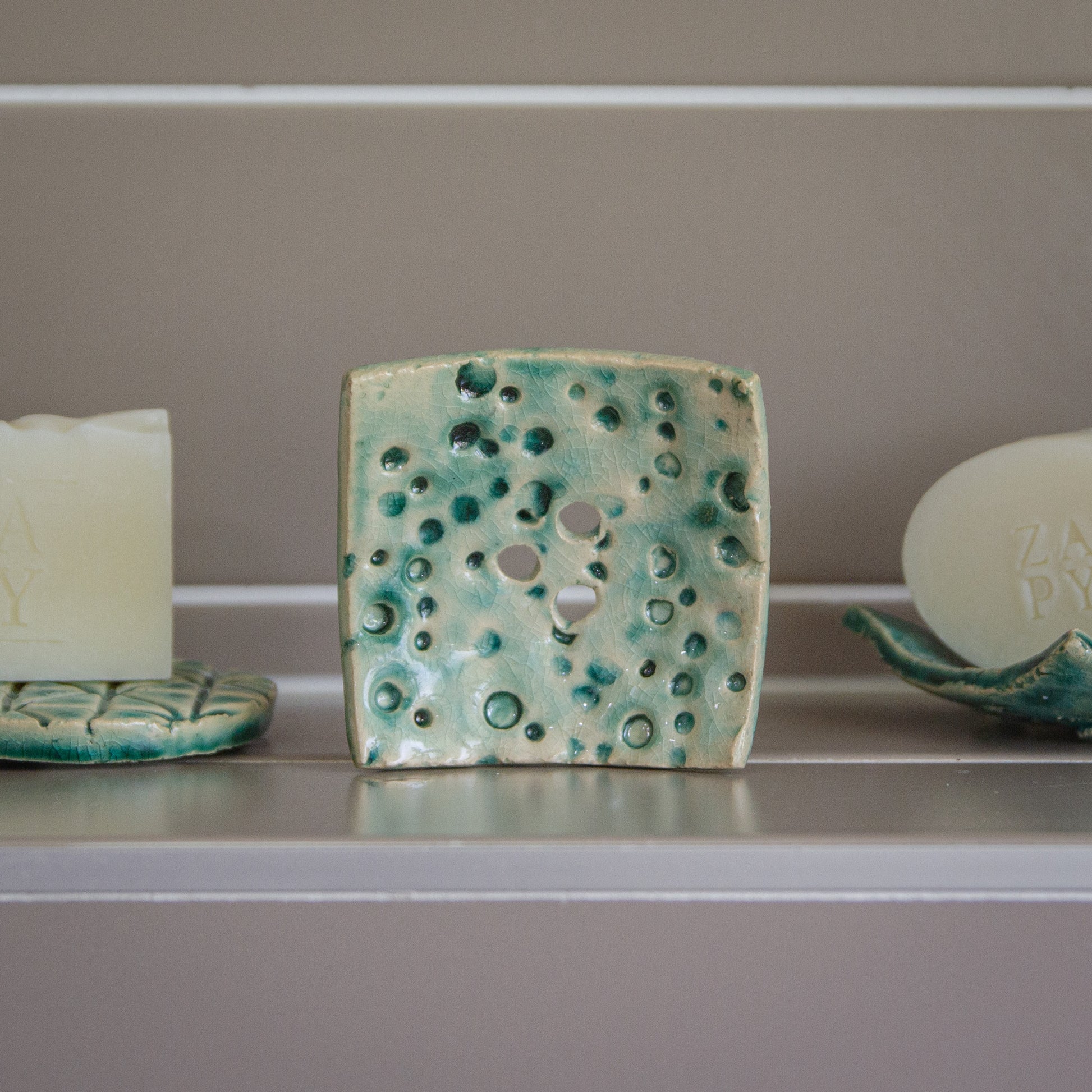 Deze handgemaakte keramieke zeepschalen worden gemaakt in Berlicum door Het Atelier van Kentalis: een creatieve werkplaats waar mensen met ernstige communicatieve beperkingen hun talenten tot leven brengen.